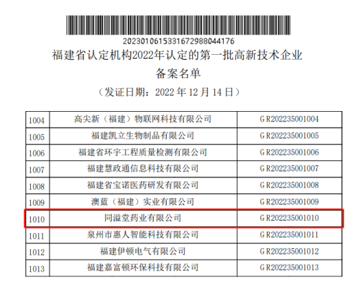 此次顺利通过高新审核,是对公司医药科研技术创新水平和成果转化能力的充分肯定,也是公司在中医药行业领域拥有核心竞争力的重要体现。公司将以本次顺利通过高新技术企业的审核为契机,在提高企业形象和知名度的同时,继续稳步推进自主创新、临床研发的进程,培养高素质的人才团队,为企业实现数字化转型和高质量发展打下良好基础。
