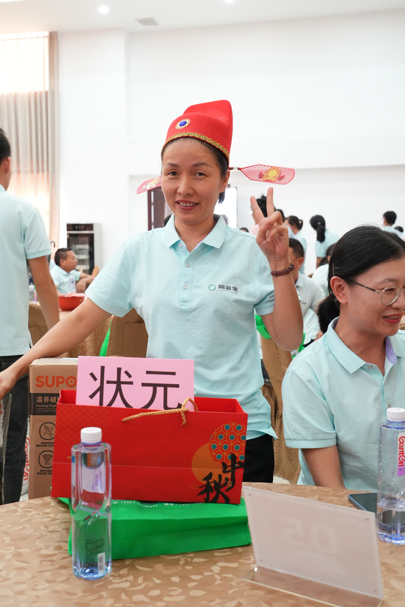 月圆中秋,共博头彩,博状元,是中秋博饼活动中最大的彩头,活动现场,大家围聚在状元碗前,骰子撞击碗边的声音、大家兴奋的喊声、每个人脸上洋溢的笑容,烘托出强烈的节日气氛。经过一番激烈的比拼,大家都收获了不少的战利品。